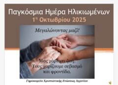 Με έναν ιδιαίτερο τρόπο τιμήθηκε η ημέρα της τρίτης ηλικίας (1η Οκτωβρίου) στο γηροκομείο της Χριστιανικής Ενώσεως Αγρινίου. Το πρωί στο παρεκκλήσιο του Αγίου Βασιλείου ο πατήρ Λαυρέντιος Καρανάσιος, συμπαραστατούμενος από τον ιεροδιάκονο π. Ιγνάτιο, τέλεσε την θεία λειτουργία και αρτοκλασία υπέρ υγείας των εργαζομένων και των φιλοξενουμένων του ιδρύματος. Τους ύμνους απέδωσε ο ιεροψάλτης κ. Χρήστος Τόλιας. Αμέσως μετά στο προαύλιο δόθηκε ο καφές και το πρωινό. Όλοι χαρήκαμε τη συναναστροφή με συγγενείς και φίλους. Ώρα 10:00 στη αίθουσα εκδηλώσεων παρουσιάστηκε εορταστικό πρόγραμμα. Μετά τον χαιρετισμό της διευθύντριας κ.…